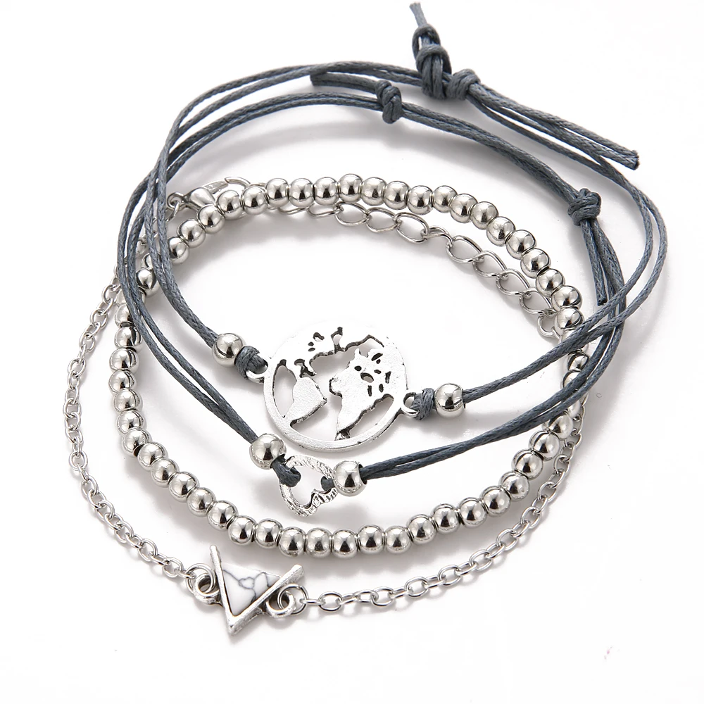 Buy 4 Pcs/Set Earth Map LOVE Heart ECG Multilayer Bracelets for Women Crystal Charm Stone Beads Pendant