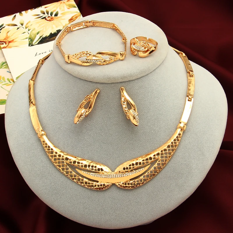 New amazing price Dubai Jewelry Sets Crystal Necklace Bracelet Earrings Ring Nigerian Wedding Party Wom