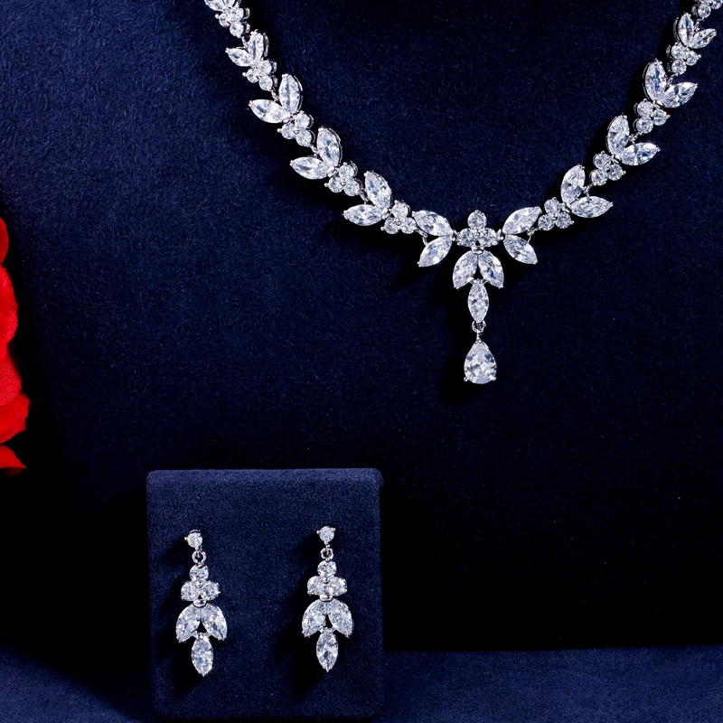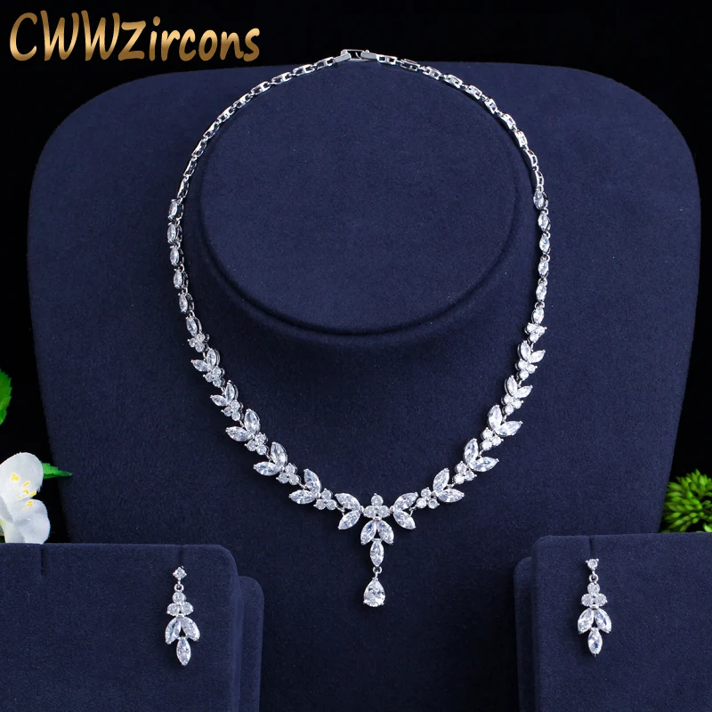 Buy CWWZircons Brilliant Cubic Zircon Party Costume Necklace Earrings Wedding Bridal Jewelry Sets Dress