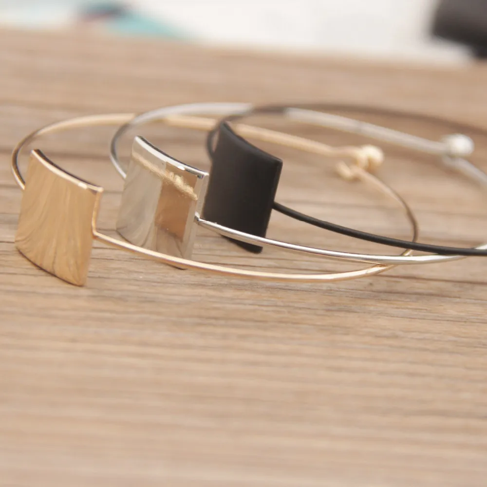 New Fashion simple geometric Triangle square round bracelet femme jewelry Popular geometric metal brace