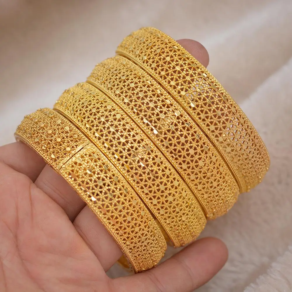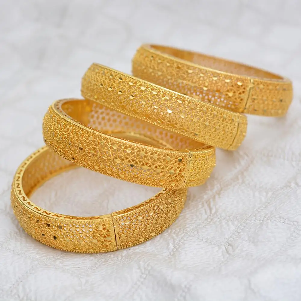 Promo Wando 4pcs/lot 24k Gold Bangles for Women Gold Dubai Bride Wedding Ethiopian Bracelet Africa Bangle