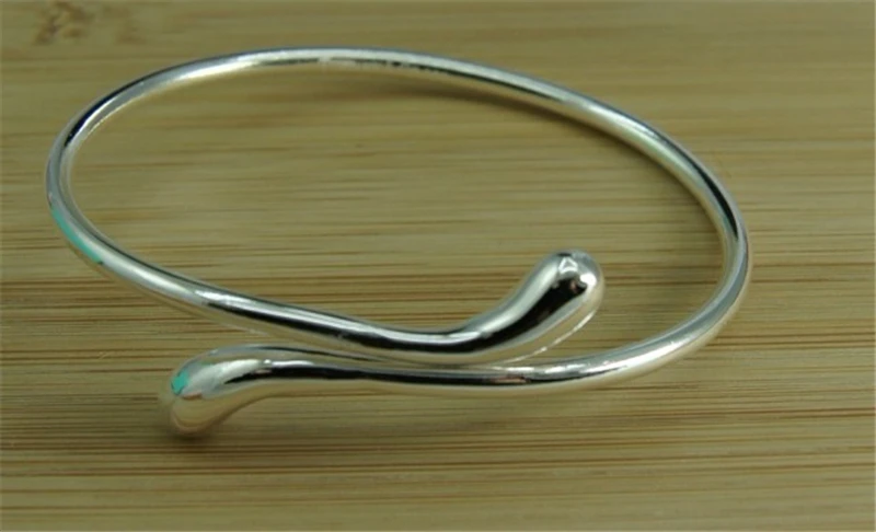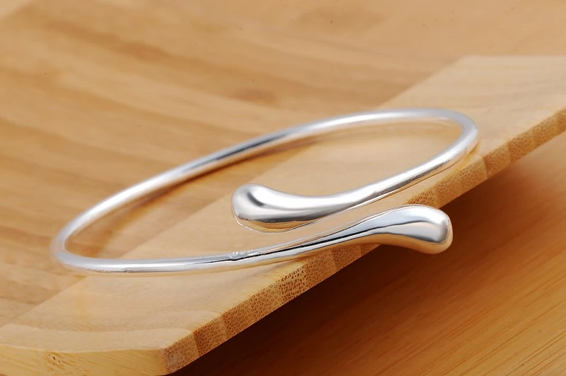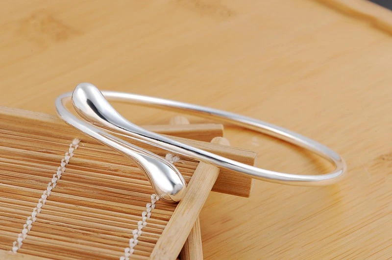 Best CharmHouse 925 Silver Bangles For Women Waterdrop Bangle & Bracelet Adjustable Wristband Pulseira F