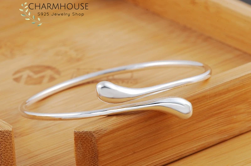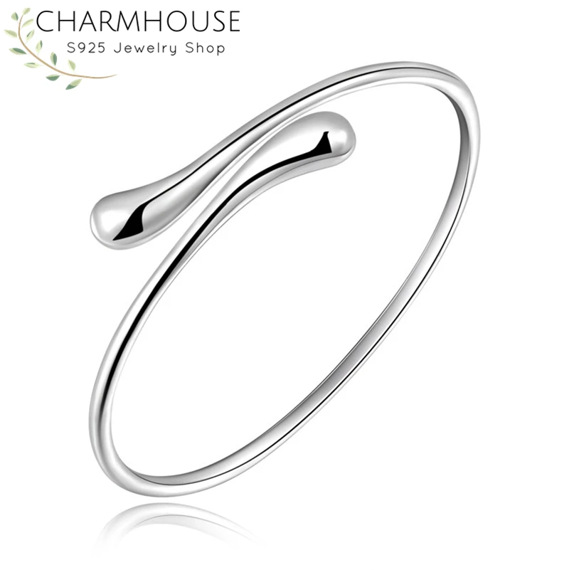 Promo CharmHouse 925 Silver Bangles For Women Waterdrop Bangle & Bracelet Adjustable Wristband Pulseira F