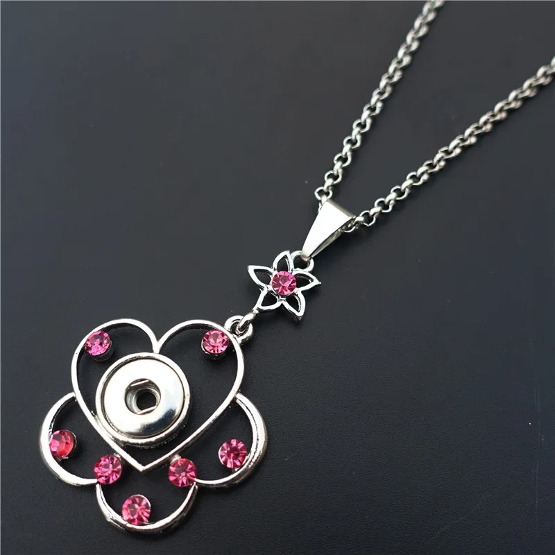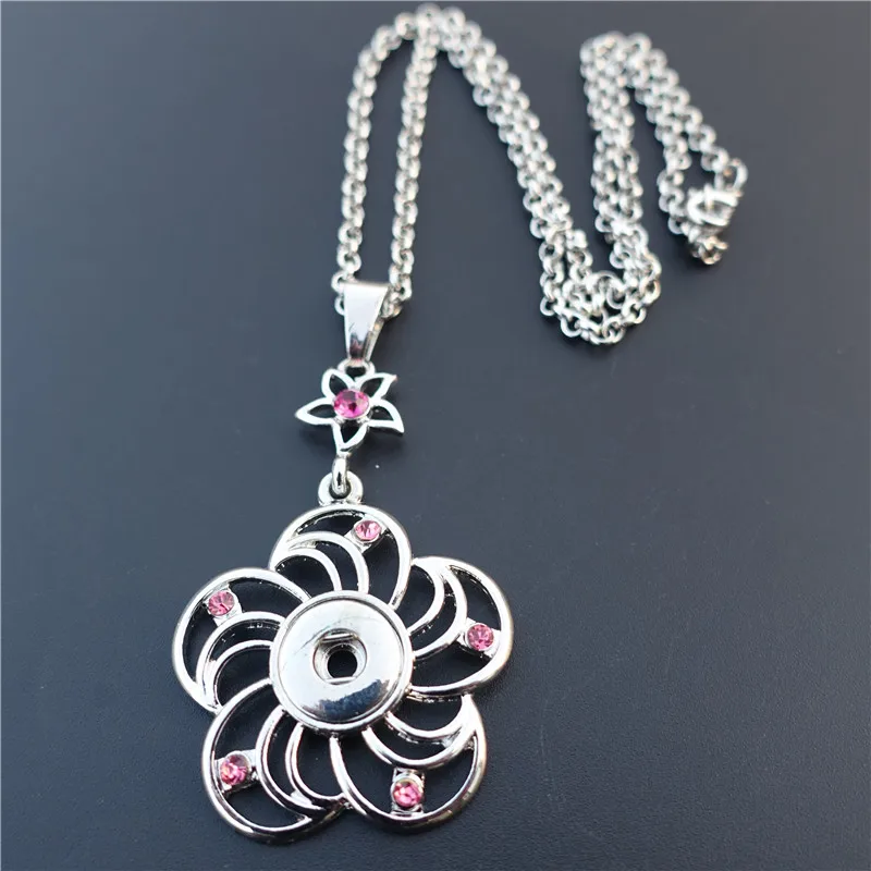 New Fashion Rhinestone Flower Metal 12MM Snap Buttons Necklace Women Jewelry
