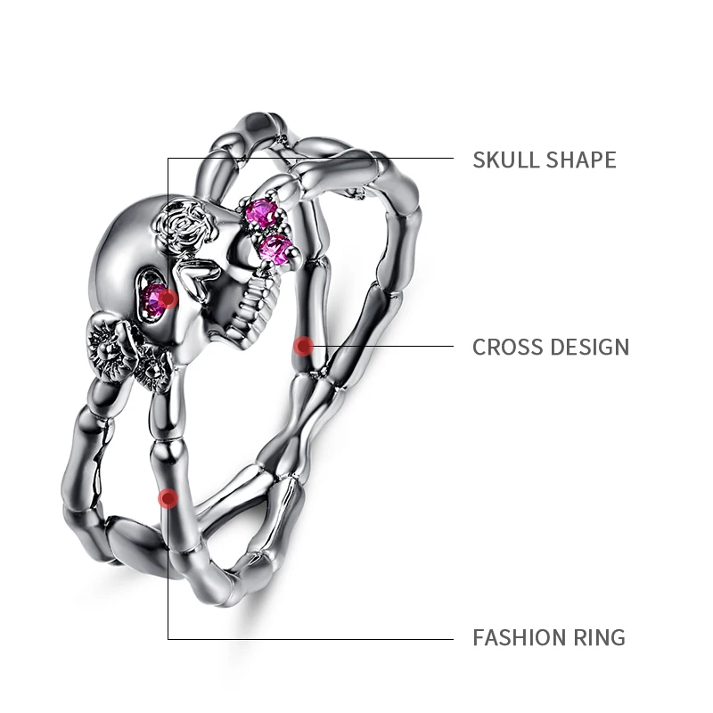 New JROSE New Popular Gun Black Cross Skull Rose Flower Silver Rings for Women Gothic Engagement Weddin