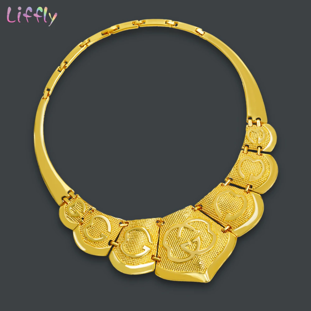 Best Liffly Dubai Gold Jewelry Sets for Women Indian Bridal Jewelry Set Necklace Earrings Fashion Weddin